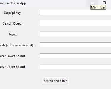 This project provides a tool that automates the search for academic articles on Google Scholar using the SerpApi and filters results based on specific keywords and topics. The application features an intuitive graphical user interface (GUI) built with tkinter, allowing users to input their API key, define search queries, and specify filtering criteria. Results are saved to Excel files and can be further filtered by examining the content of linked web pages.